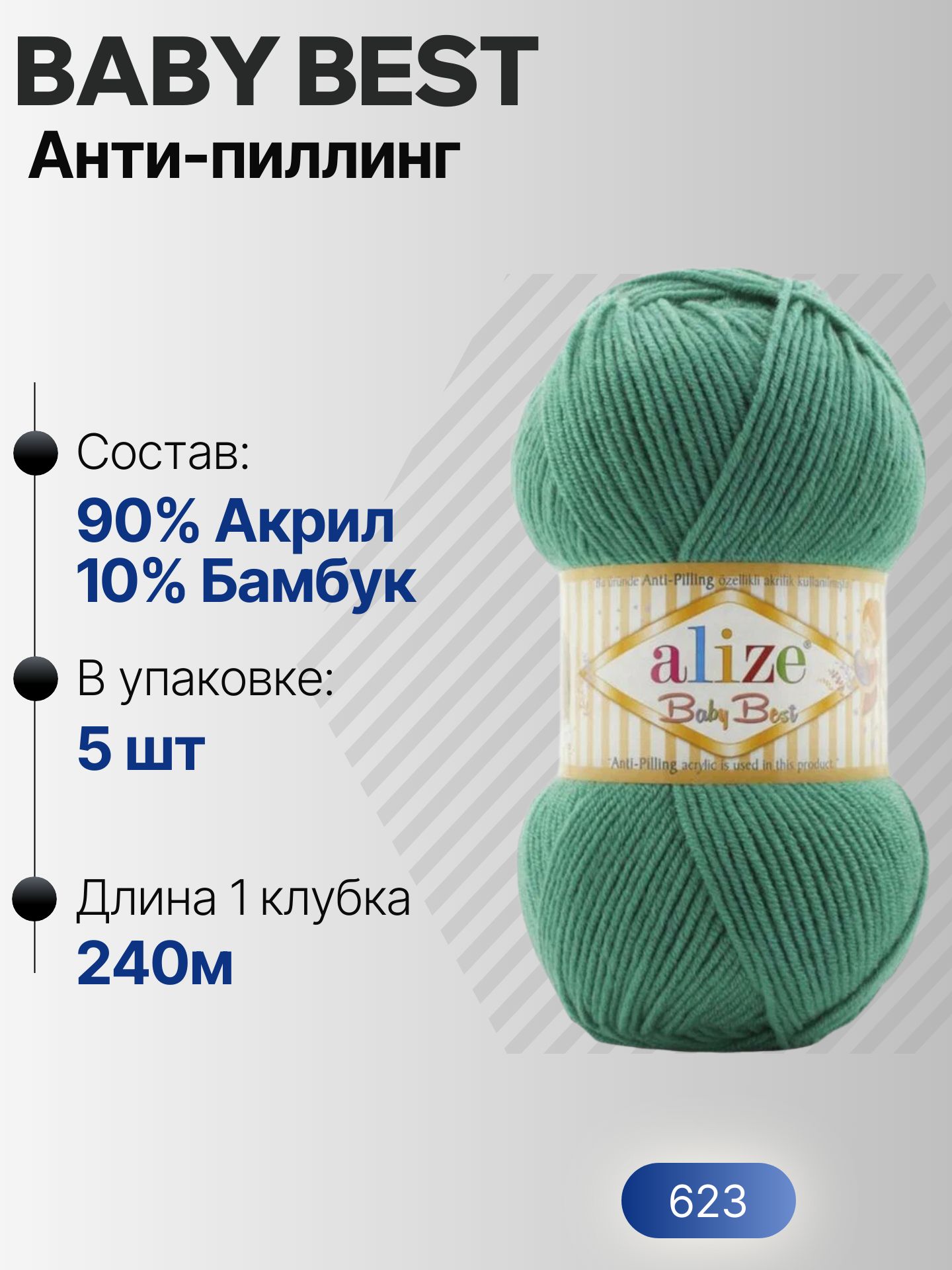 Беби бест (Baby best) пряжа Alize 10% бамбук 90%акрил 5х100г/240м 623 Т. зеленый – купить за 959 ₽ | NitkaClub163 Пряжа для вязания в Самаре, Интернет-магазин пряжи и товаров для рукоделия. Самара 116км, 113км, Сухая Самарка, пос. Водников, ЮГ1, ЮГ2