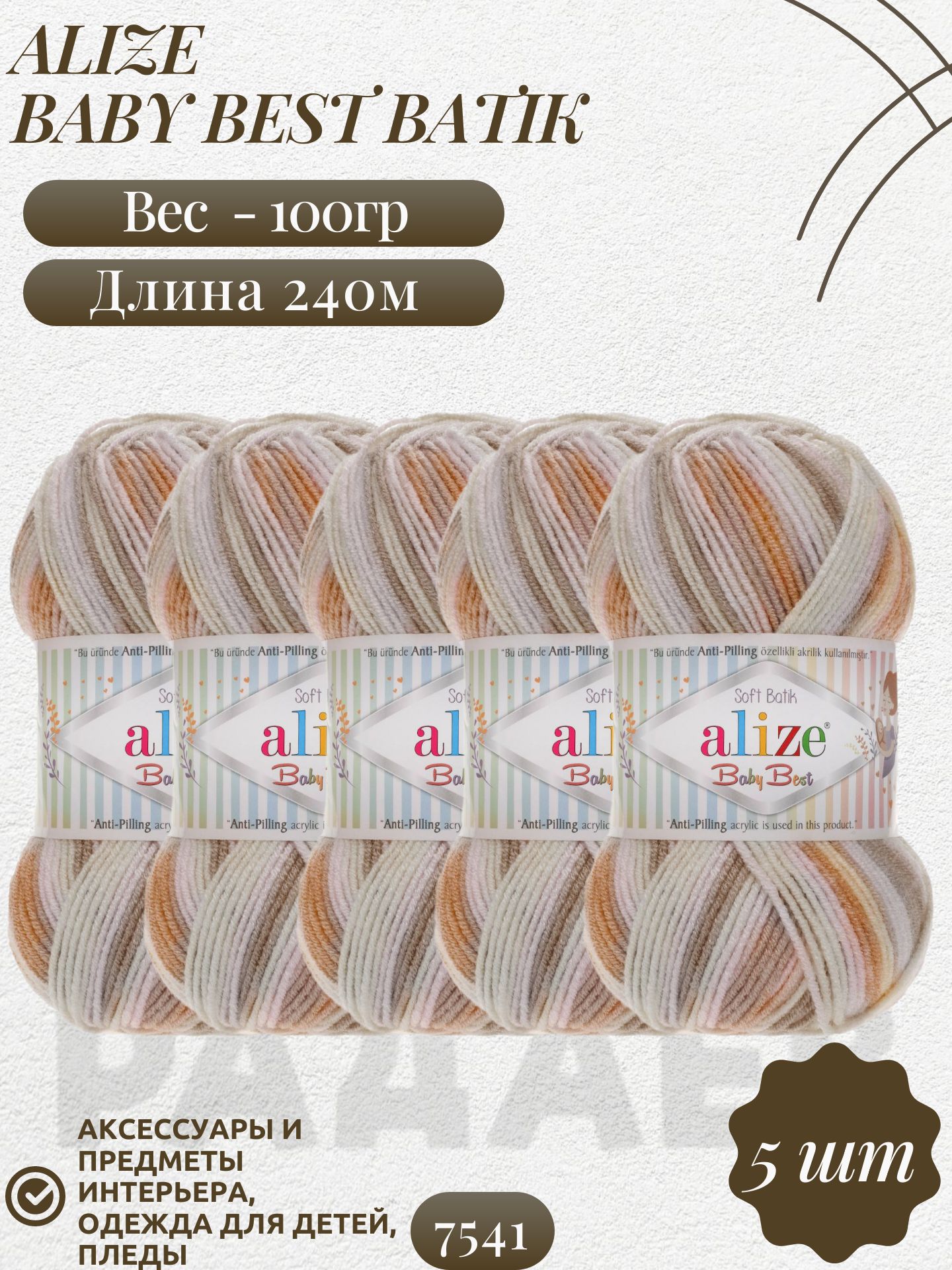 Беби бест батик (Baby best batik) пряжа Alize 10% бамбук 90%акрил 5х100г/240м 7541 молочно-св.бежево-св.коричневый