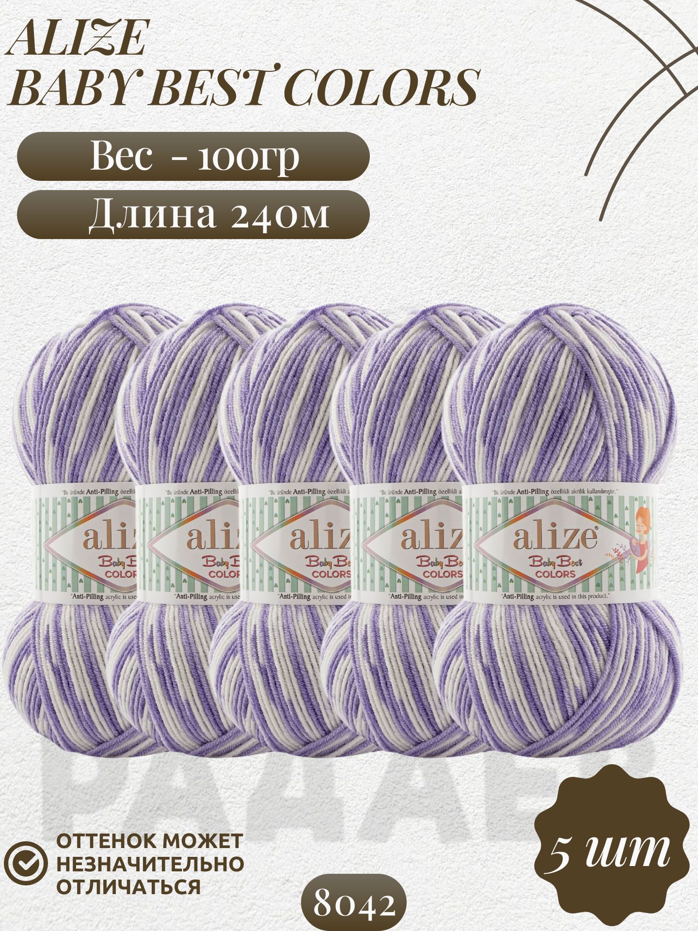Беби бест колор (Baby best color) пряжа Alize 10% бамбук 90%акрил 5х100г/240м 8042 белый-сиреневый