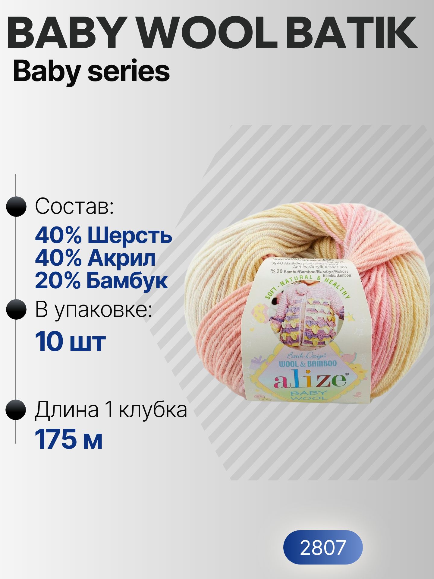 Беби Вул батик (Baby Wool batik) пряжа Alize 40%шерсть 20%бамбук 40%акрил 10х50г/175м 2807 – купить за 1 860 ₽ | NitkaClub163 Пряжа для вязания в Самаре, Интернет-магазин пряжи и товаров для рукоделия. Самара 116км, 113км, Сухая Самарка, пос. Водников, ЮГ1, ЮГ2