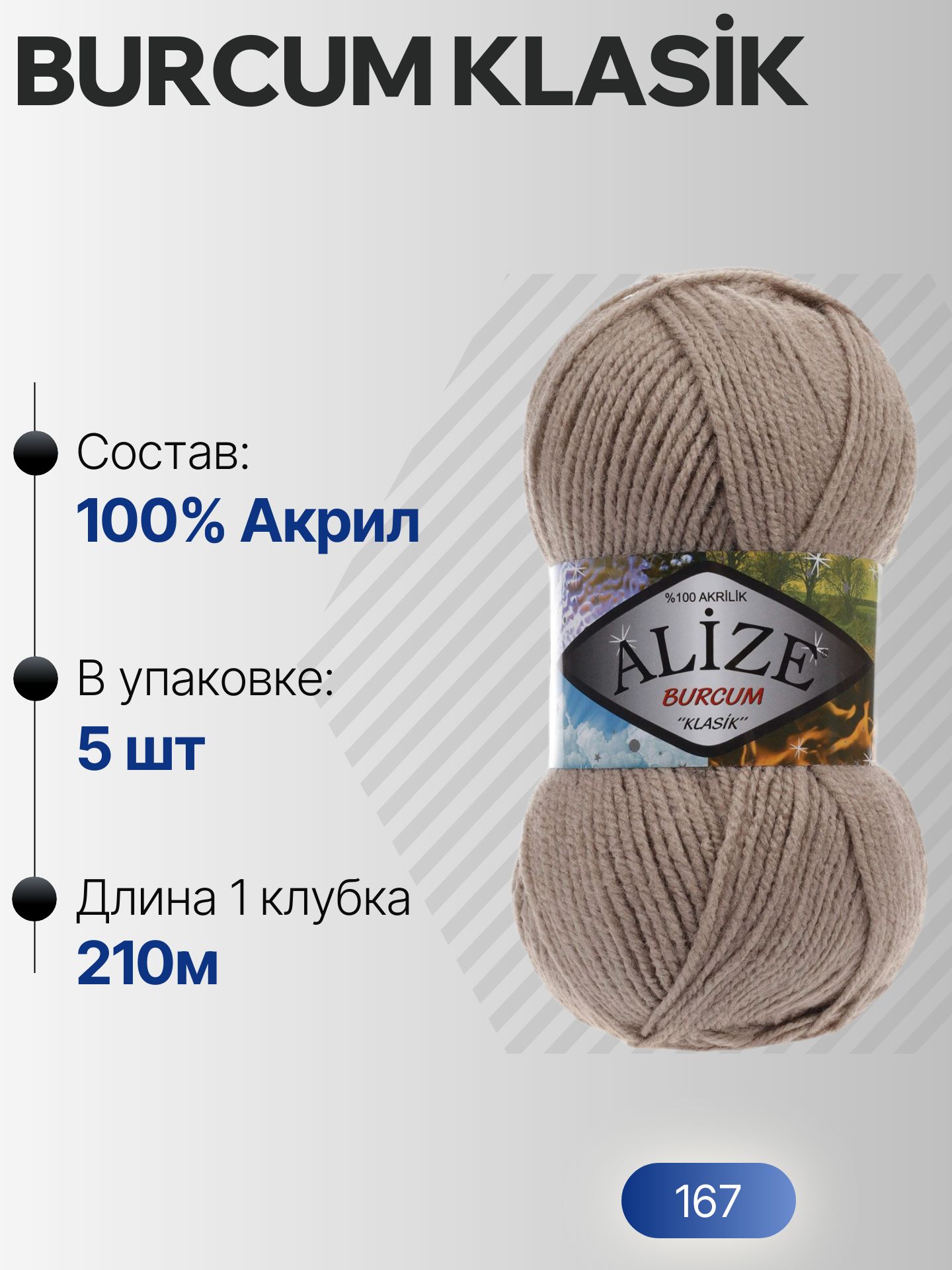 Бурджум классик (Burcum klasik) пряжа Alize 100%акрил 5х100г/210м (167 каменный) – купить за 899 ₽ | NitkaClub163 Пряжа для вязания в Самаре, Интернет-магазин пряжи и товаров для рукоделия. Самара 116км, 113км, Сухая Самарка, пос. Водников, ЮГ1, ЮГ2