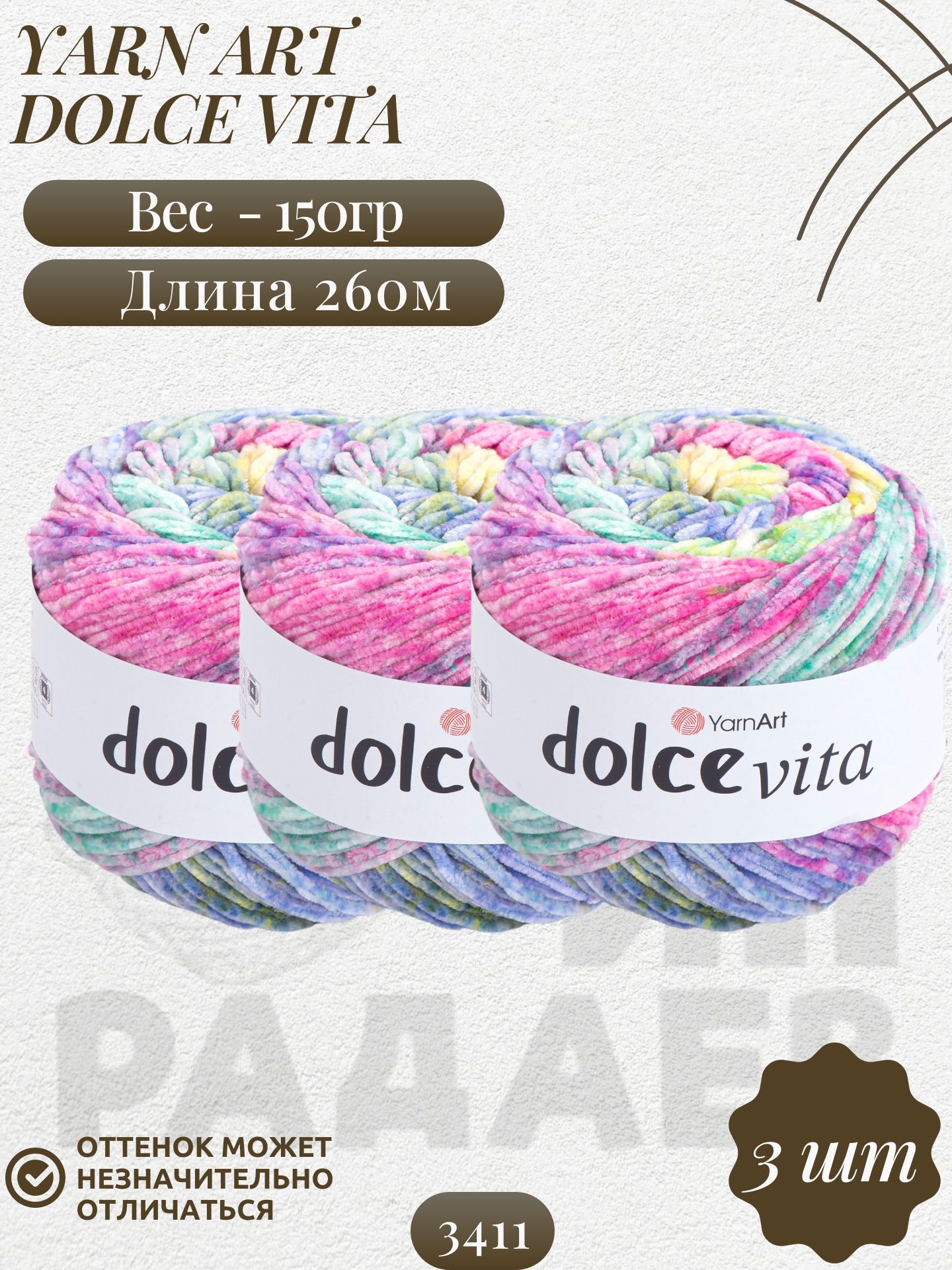 Дольче Вита (Dolce Vita) пряжа YarnArt 100%микрополиэстер 3х150г/260м (3411) – купить за 1 299 ₽ | NitkaClub163 Пряжа для вязания в Самаре, Интернет-магазин пряжи и товаров для рукоделия. Самара 116км, 113км, Сухая Самарка, пос. Водников, ЮГ1, ЮГ2