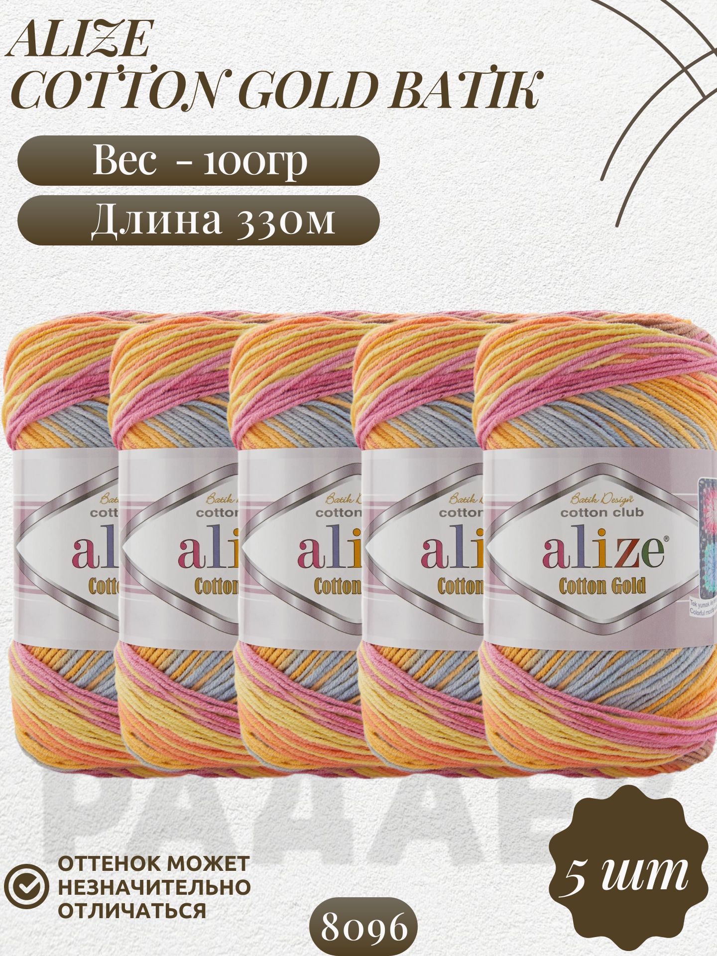 Коттон голд батик (Cotton gold batik) пряжа Alize 55%хлопок 45%акрил 5х100г/330м (8096 кофейный-жёлтый-оранжевый-голубой-розовый) – купить за 1 399 ₽ | NitkaClub163 Пряжа для вязания в Самаре, Интернет-магазин пряжи и товаров для рукоделия. Самара 116км, 113км, Сухая Самарка, пос. Водников, ЮГ1, ЮГ2