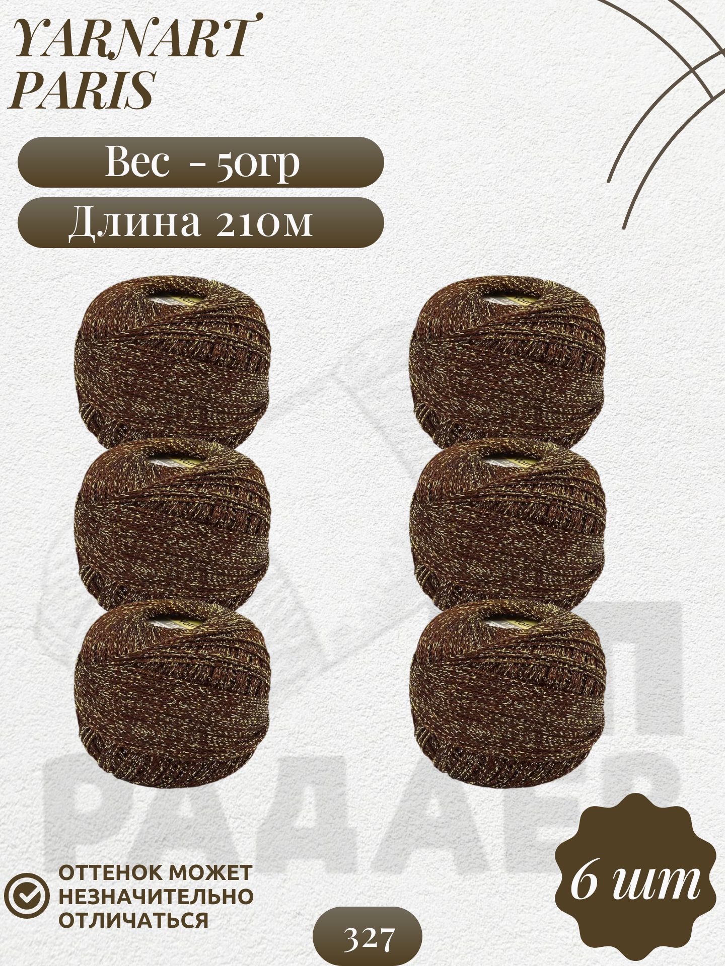 Пряжа «Париж» от бренда YarnArt – это идеальное сочетание элегантности и доступности! Она подарит вашим изделиям утонченность благодаря составу из 75% вискозы и 25% металлика. Идеальна как для стильных джемперов и кардиганов, так и декоративных элементов интерьера. А тонкий диаметр нити позволяет использовать её как крючком, так и спицами. Шесть мотков по 50 грамм каждый облегчат процесс создания крупных изделий без стыков – удобство и красота в каждой детали!