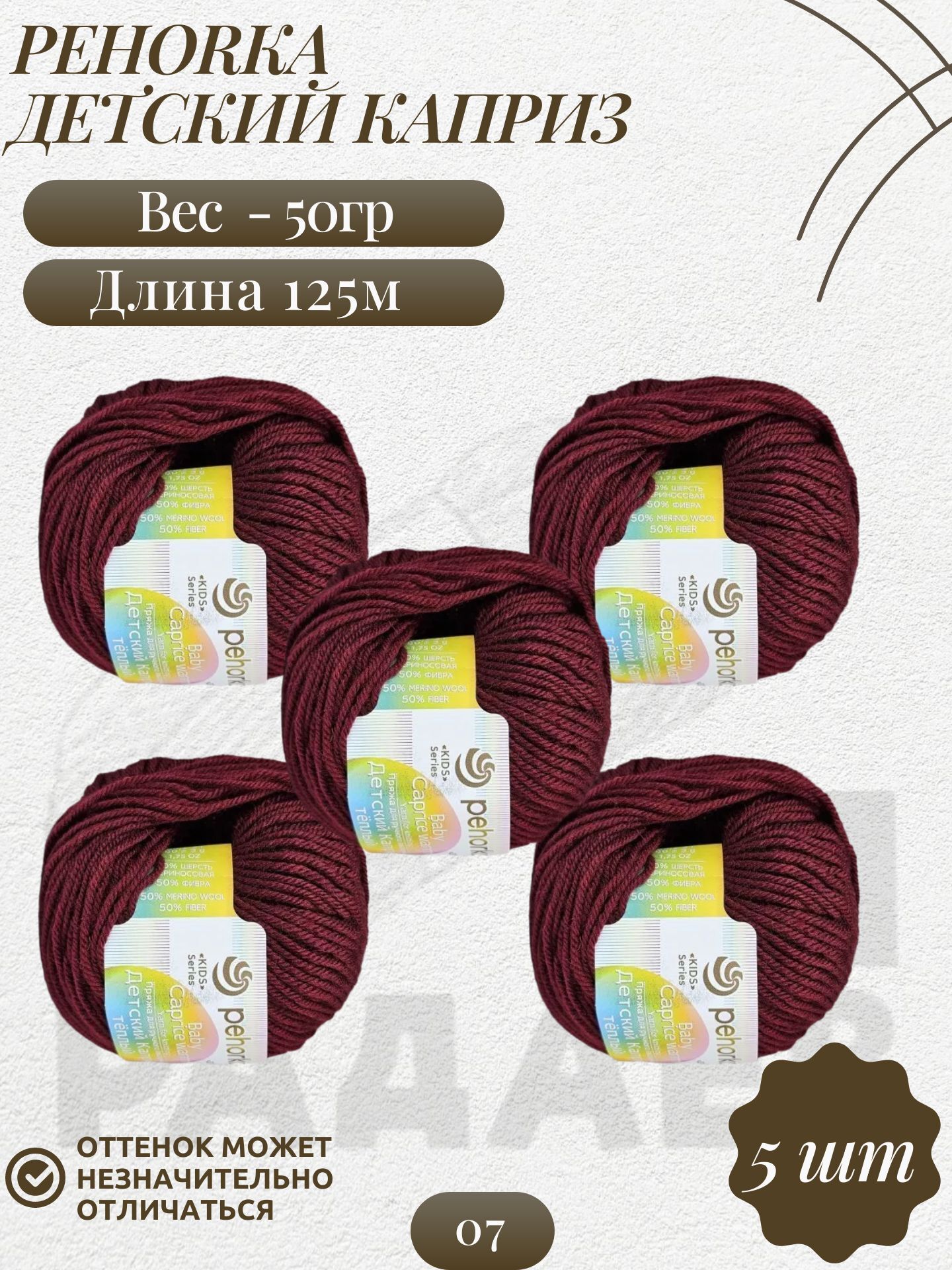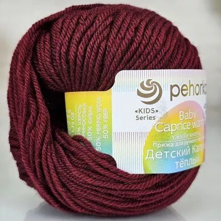 Пряжа Детский каприз, Пехорка, 50%меринос.50%фибра 5х50г/125м (007-Бордо)