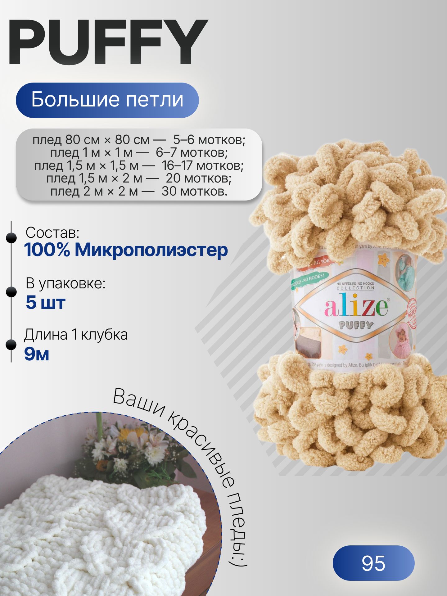 Пуффи (Puffy) пряжа Alize 100%микрополиэстер 5х100г/9,2 м 95 бежевый – купить за 999 ₽ | NitkaClub163 Пряжа для вязания в Самаре, Интернет-магазин пряжи и товаров для рукоделия. Самара 116км, 113км, Сухая Самарка, пос. Водников, ЮГ1, ЮГ2