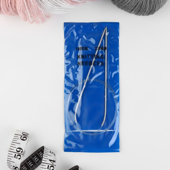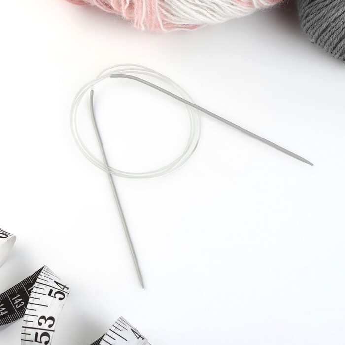 Круговые спицы представляют собой две металлические части, соединённые друг с другом пластиковой леской. Инструмент незаменим при вязании полотна по кругу. С его помощью получаются изделия без дополнительных швов: шапки, рукава и горловины.