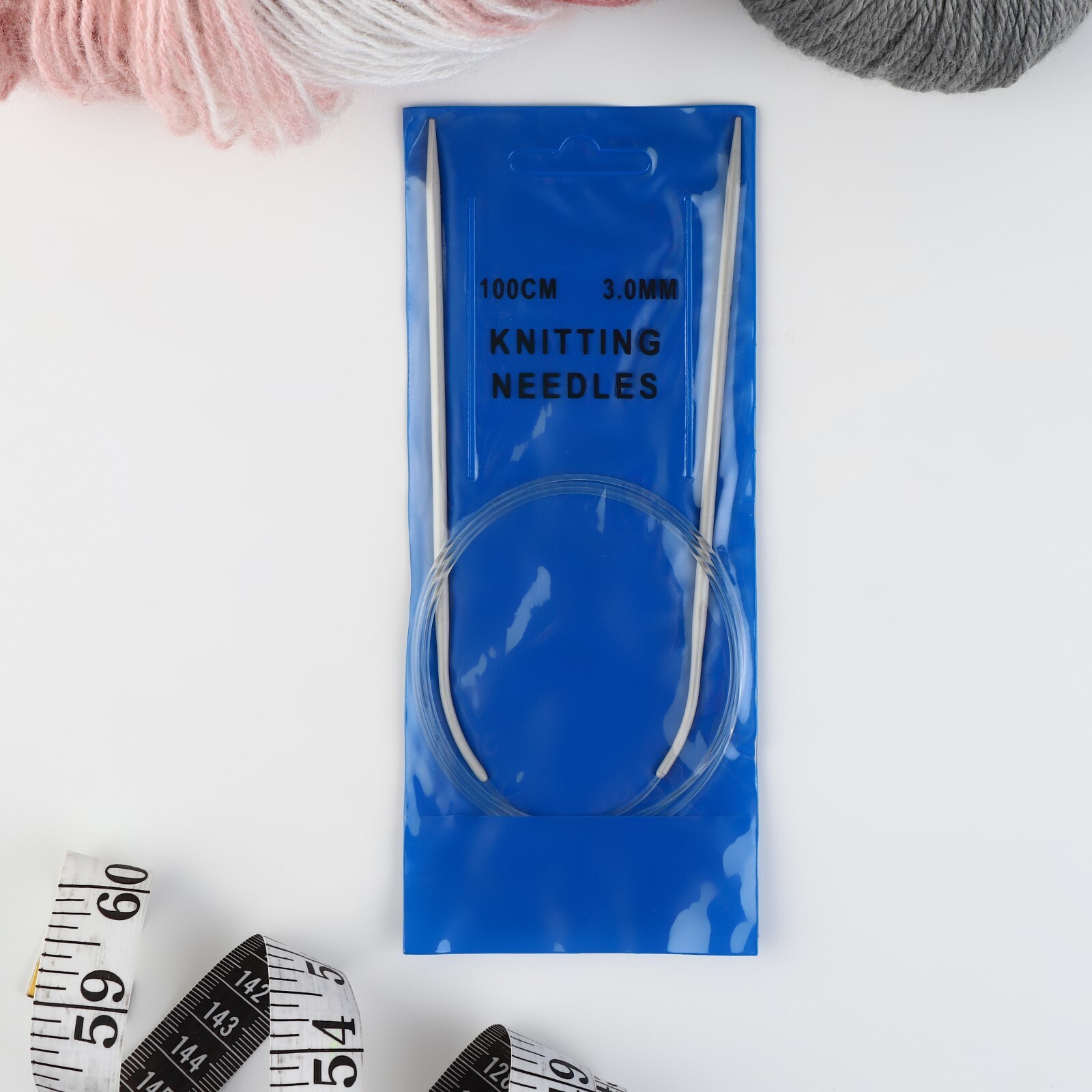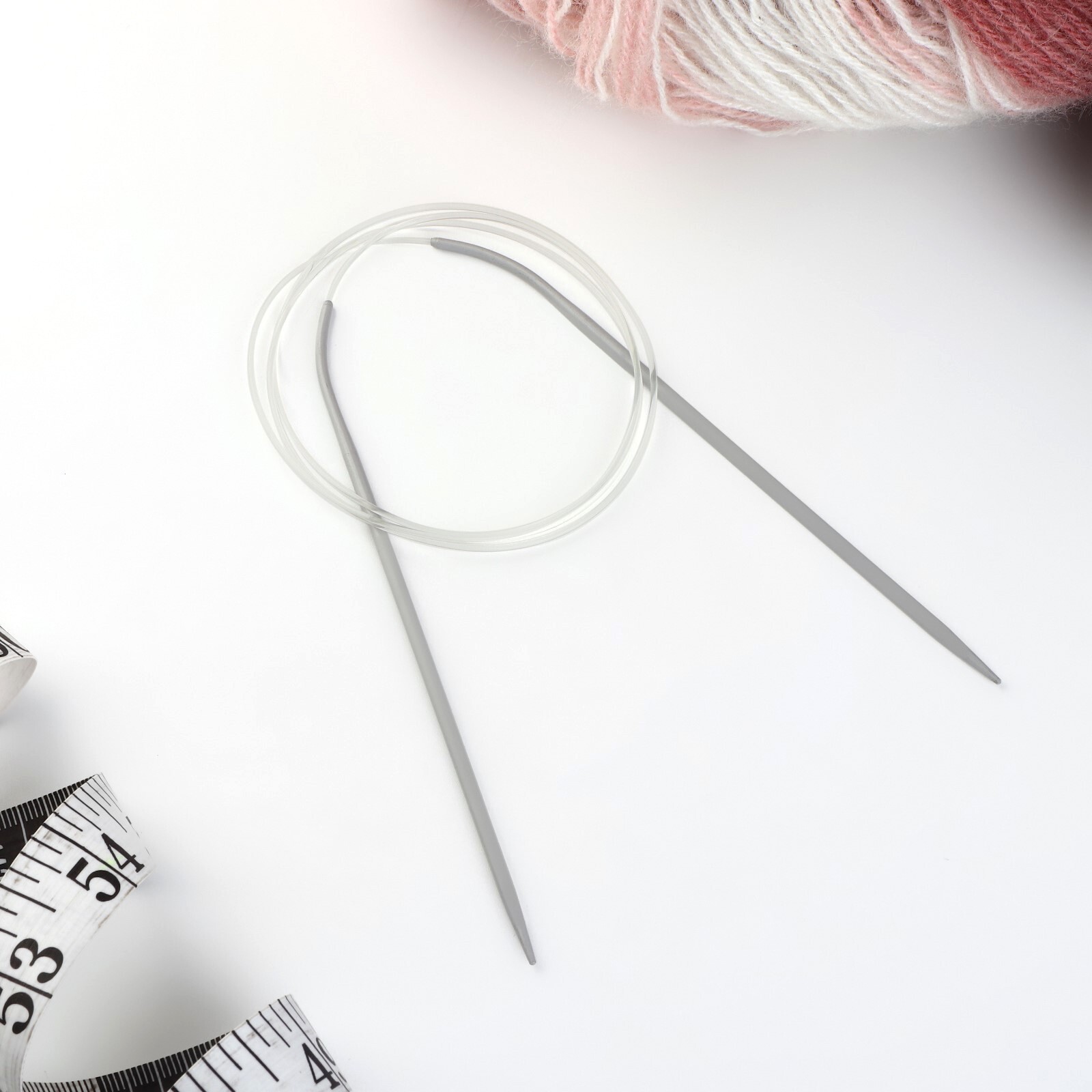 Круговые спицы представляют собой две металлические части, соединённые друг с другом пластиковой леской. Инструмент незаменим при вязании полотна по кругу. С его помощью получаются изделия без дополнительных швов: шапки, рукава и горловины.